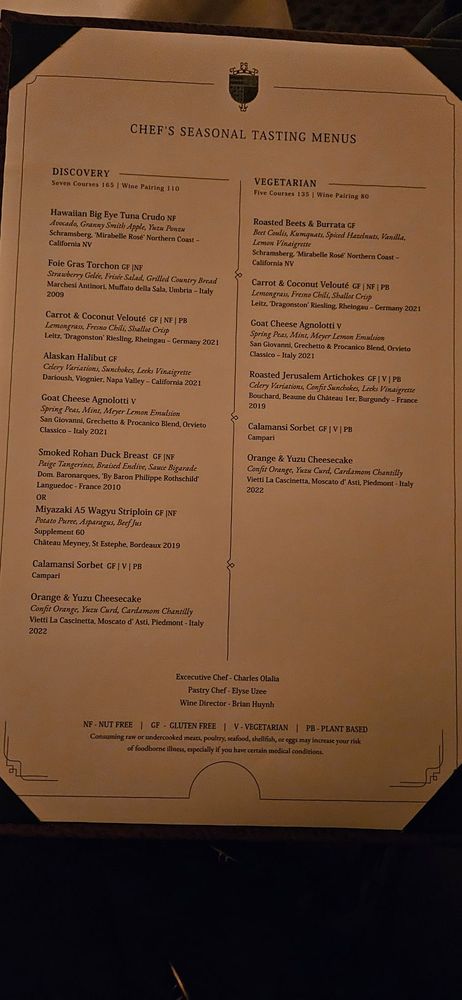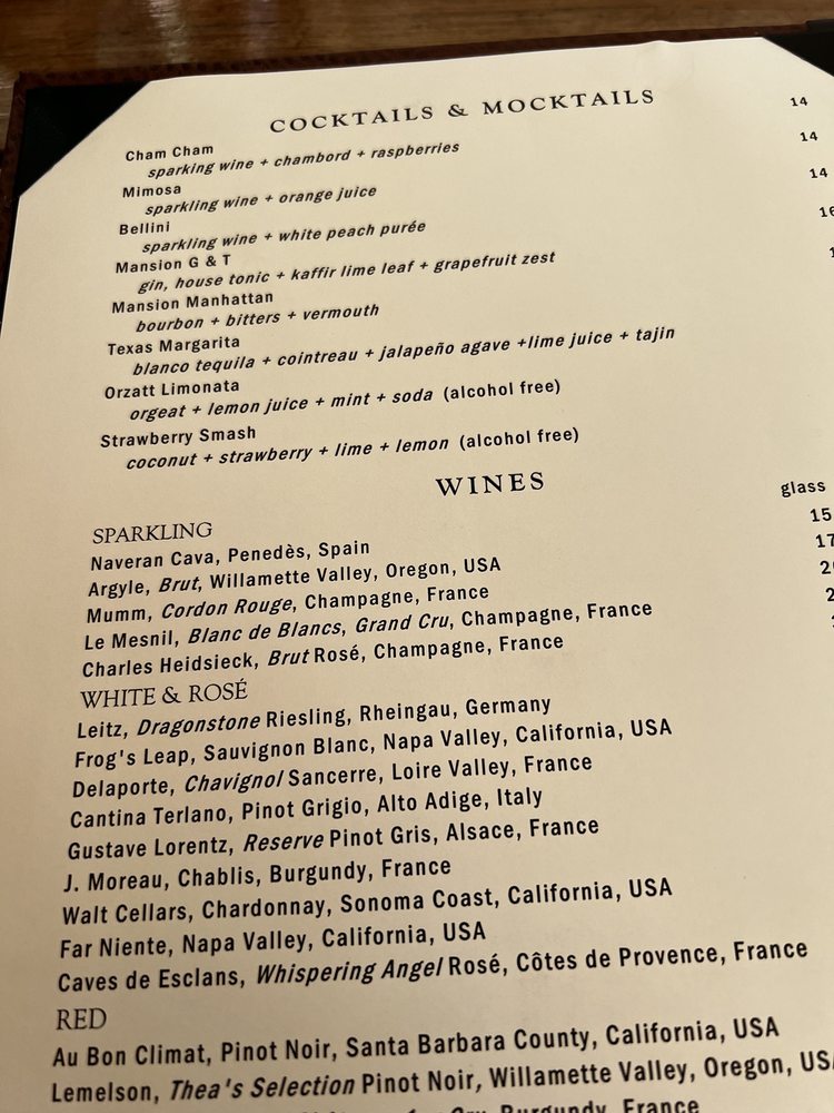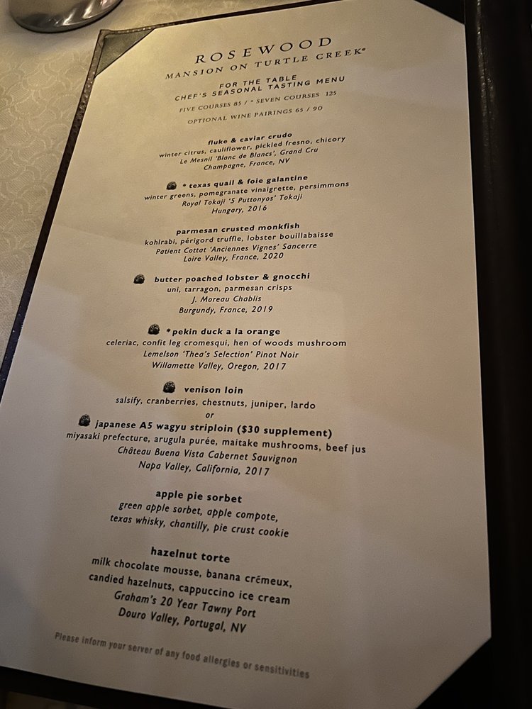 The Mansion in Dallas, TX offers a New American cuisine in an upscale and romantic setting. With exceptional service and a beautiful ambiance, this restaurant has received high praise from customers. The 7-course discovery menu, featuring dishes like Big Eye Tuna Crudo, Foie Gras Torchon, Carrot Coconut Velouté, Chevre Agnolotti, and Smoked Rohan Duck Breast, showcases the creativity and skill of Executive Chef Charles Olalia. The extensive wine menu and dessert options, such as the Cheese Cake with Yuzu infused curd, make for a truly memorable dining experience. The attention to detail in service, exquisite decor, and delicious food at The Mansion make it a must-visit for a special night out.